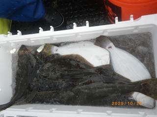 10/25 ヒラメで出船、6~15枚38~50㎝船中キープサイズ45枚他にイナダ、ワラサ、良型カサゴ混じり。