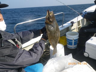 10/30 ヒラメで出船、3~8枚35~48㎝、他にイナダ混じり、潮廻りが悪く喰い渋りバラシも多かった。