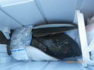 ジギング好調ヒラメ2桁キープイナダ多数、マスナタ400g冷凍イワシ中型が揃っていました。