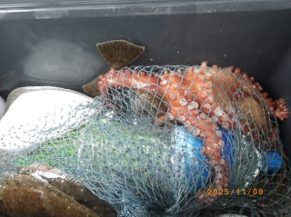 海水温が下がりカレイが見えてきた、タコも混じりおもしろ味が出てきました。。