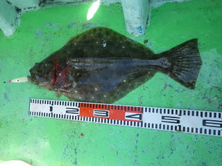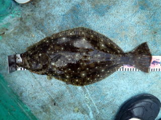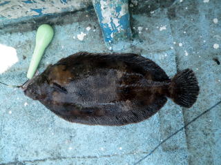 久々に良型が出た、身も厚く寒ヒラメ模様。