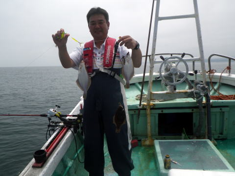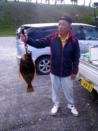 各船、苦戦気味でしたが良型ヒラメが出る。