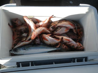 胴突き6本針、メタルジグ100~150g、入れ食いが続きクーラーインの他に写真の状態。