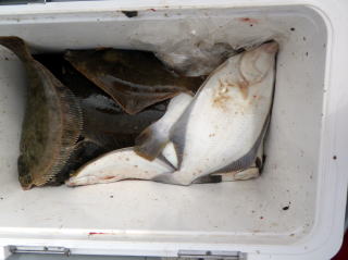 8/7 ヒラメで出船、35~65㎝弱、2~11枚(船中25枚)ソイやアブラメ、メバル、カレイ交じり。