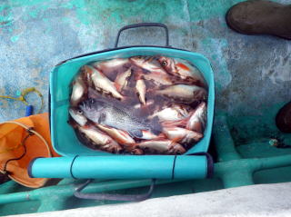 サバ釣りの釣果、クーラーボックスインの他にバケツイン。