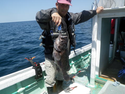 5/5 アブラメで出船、東京からのご一行様良型をゲット強烈な首振りダンスを堪能していました。