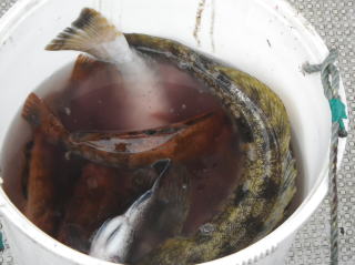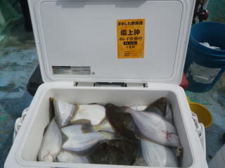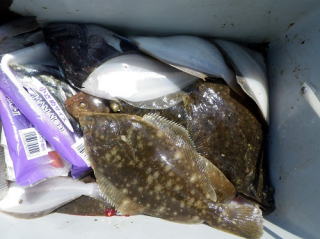 カレイはマコカレイ主にナメタ,ミズクサ、ソウハ千カレイ混じり4~13kg(20~60枚)スネーク天秤、ラダー天秤、カレイシュータ、錘40号、餌はエラコや青イソメ使用。
