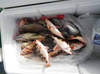 12/17 メバル五目で出船メバル30~50匹良型サバ、ソイ、ガヤ混じり、胴突き6~8本針ハリス2~3号、錘100号餌はイカタン、サバ切り身、JG。