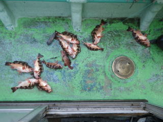 5/10 アブラメで出船一人7~18匹、30~45cm、ソイやタラが混じりました。