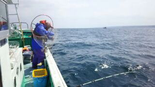 水中ライトや片天秤、錘100号さかしたオリジナル仕掛使用。