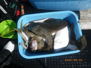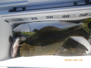 9/30 ヒラメで出船、40~60㎝、6~26匹、ワラサ、ソイ混じり。