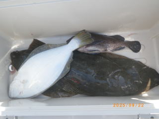 9/22 ヒラメで出船、7~10枚、40~60㎝ワラサ、ソイ混じり。