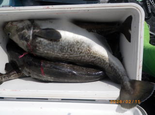 2/15 タラジギングで出船、70~95㎝、7~15匹(船中数十匹)、後半食いが立った。