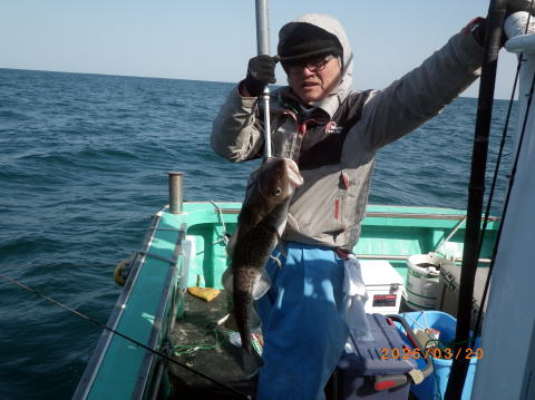 3/29 タラジギングで出船、1~6匹60~85㎝船中14匹、良型ソイやアブラメ混じり、まだ行けそう。
