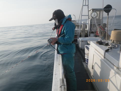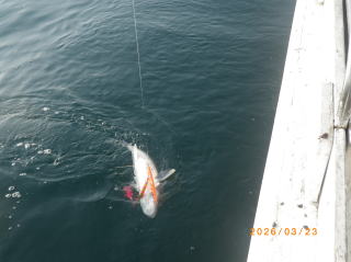 3/23 タラジギングで出船、6~12匹、60~85㎝、まだ行けそうです。