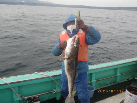 1/17 タラジギングで出船、5~12匹(船中64匹)、65~90cmと好調でした。