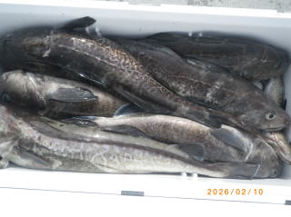 2/11 タラジギングで出船、0~2匹、船中6匹、80~95㎝の良型、ソイや助宗タラ、アブラメ混じり。