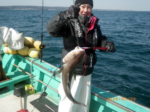 3/29 タラジギングで出船、1~6匹60~85㎝船中14匹、良型ソイやアブラメ混じり、まだ行けそう。